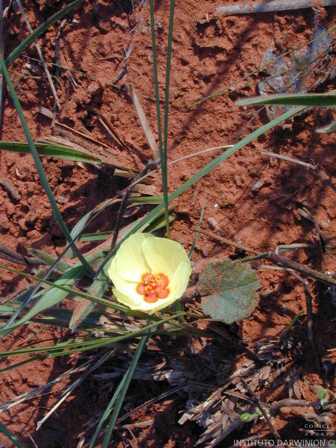 Plantas perennes, con los tallos arrastrándose a partir de un patrón leñoso, hirsutos con pelos de 1-2 mm de largo y con un sotobosque de pelos finos estelares, o a veces con los pelos largos ausentes, raramente glabra. Hoja orbicular, profundamente cordada, crenado-dentado, obtuso o subagudo, 1,5-5 × 2-6,5 cm, palmati 7-nervada suavemente con pelos estrellados, algo descolorido. Pecíolos de 1-6 cm de largo. Estipulas subuladas, 4-8 mm de largo. Flores solitarias en las axilas de las hojas, los pedicelos de 2-9 cm de largo. Brácteas involucelares 9-11, lineales-lanceoladas, 6-10 × 1 mm (más cortas que a más largas que el cáliz), pubérulas o ciliadas, a veces viscosas. Cáliz de 7-10 mm de largo, pubescente. Corola de 1,5-2,5 cm de largo, de color amarillo (secado rojizo) con un centro rojo marcadamente definido, pubescente en los márgenes de la garra. Columna estaminal de 7-9 mm de largo, rojiza (al menos básicamente), filamentos de 1-2 mm de largo, anteras purpúreas. Estilos emergentes de la columna, unidos excepto por distal 1 mm, casi igualando los pétalos. Frutos oblatos, de 9-10 mm de diámetro, glabros, los mericarpos de 5-6 mm de altura, más o menos estriados y reticulados, a veces la cresta proyectada subapicalmente en una protuberancia triangular. Semillas de 5 mm de largo, estriado. [Subarbustos prostrados a decumbentes; ramos partindo de um grande xilopódio, com tricomas simples, longos e hirsutos, podendo estar ausentes, raros tricomas estrela- dos longos e com uma cobertura de tricomas estrelados curtíssimos mais densa. Folhas com lâminas orbiculares, 1,2-4,8 x 2,9-5,3 cm, base cordada, 7 a 9 nervuras basais, face adaxial e abaxial com tricomas estrelados curtos; estípulas subuladas, 4-8 mm compr. Flores axilaressolitárias; pedicelos 5-10,6 cm compr.; epicálice com 8-10 bractéolas, linear-lanceoladas, 10-13 x 1-1,5 mm; corola amarela, com uma mancha vermelha na base superior de cada pétala, tornando-se vermelha quando seca, 2,9-3,5 x 2,2-3,3 cm; tubo estaminal 10- 13 mm compr. Mericarpos 7-8 x 5-6 mm, múticos, sem ornamentações ou seja, lisos, deiscentes dorsalmente, esparsamente pubescentes e verrucosos no ápice.]