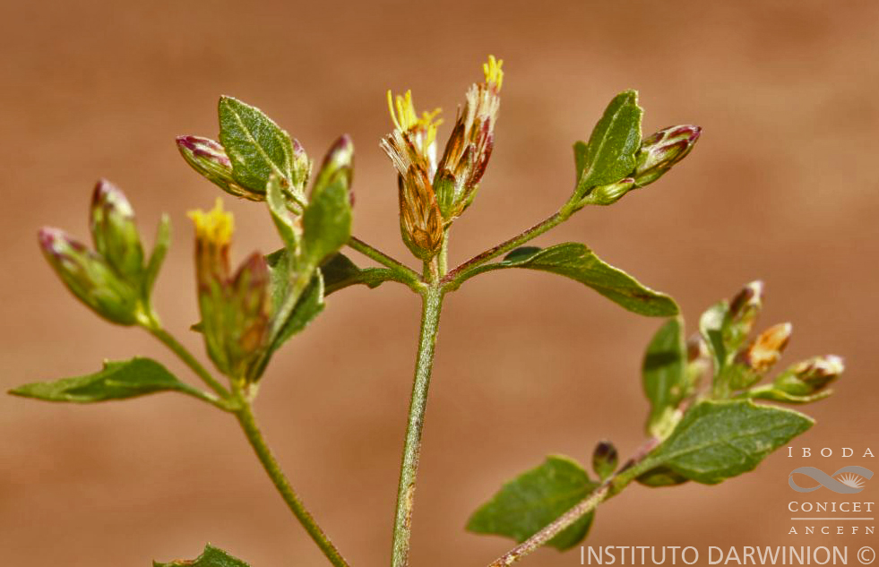 Arbustos apoyantes o rastreros de 0,3-2(-3-4) m de alto, con ramas muy abiertas, ligeramente pubescentes. Hojas brevemente pecioladas, láminas ovadas u ovado-rómbicas, de 1,5-5 × 1-3 cm, redondeadas, deltoides o semiacorazonadas en la base, agudas en el ápice, dentadas en el margen, concolora o discolora, cortamente pubescentes, a veces densamente tomentosas en el envés. Capítulos dispuestos en cimas corimbiformes terminales, formando falsas panojas hojosas. Involucro acampanado, de 6-9 × 3-4 mm; filarios 12-18, en 3-4 series, los externos más cortos, lanceolados, agudos en el ápice, ligeramente pubescentes en el ápice, con 3-5 nervaduras en el dorso. Receptáculo plano. Flores 7-12, corolas de 10 mm de largo, verdosas o amarillentas. Aquenios híspidos en las costillas, de 3-4 mm de largo. Papus blanco o rosado.