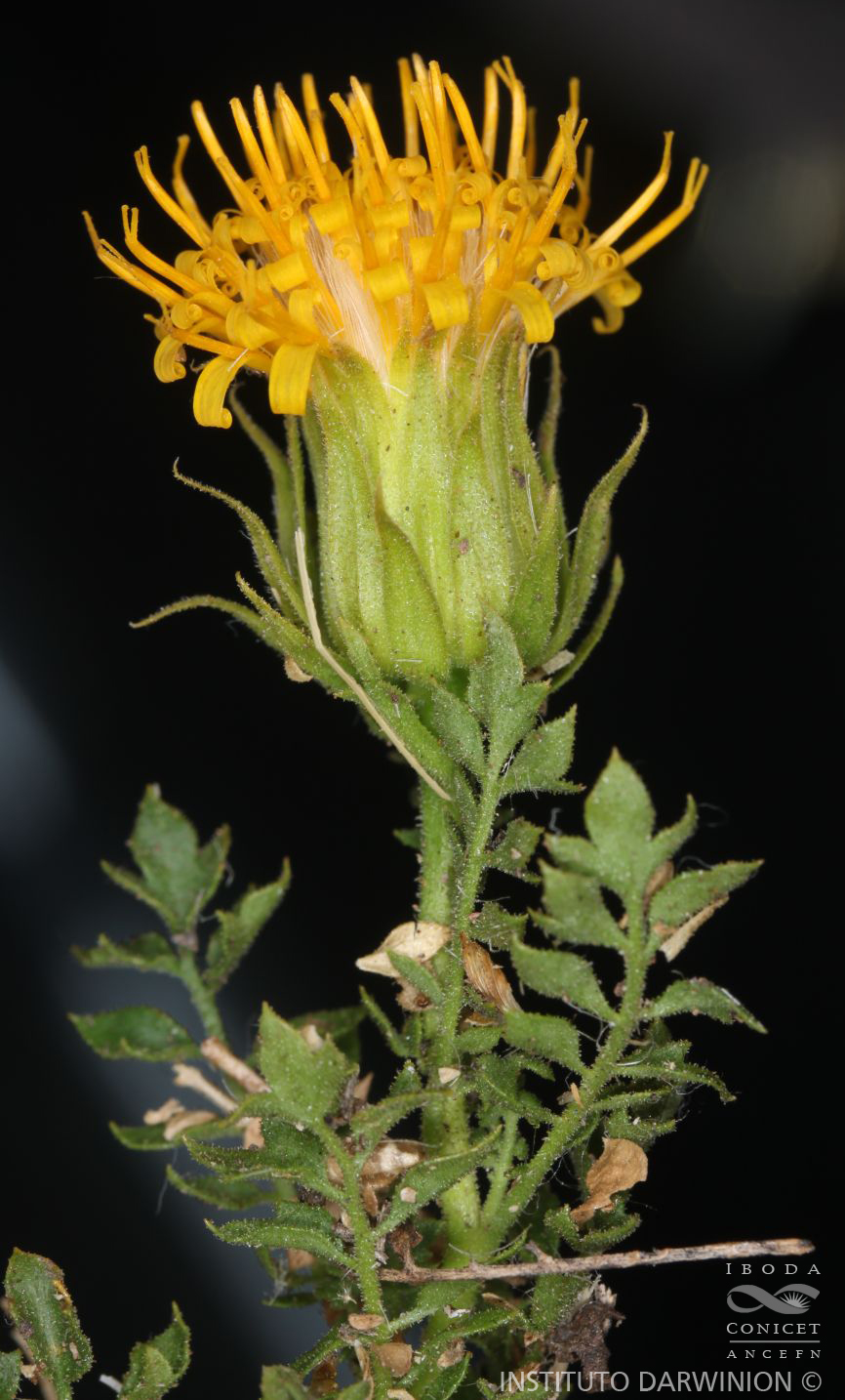 Arbustos de 15-25 cm de alto. Hojas de 2,5-4 cm × 0,5 cm. Involucro de 15-25 × 15-20 mm. Flores ca. 30, corola de 15-16 mm de largo. Aquenios de 2-6-mm de largo. Papus de 10-13 mm de largo.