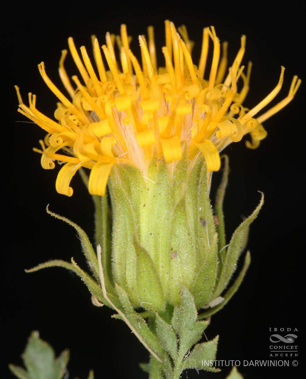 Arbustos de 15-25 cm de alto. Hojas de 2,5-4 cm × 0,5 cm. Involucro de 15-25 × 15-20 mm. Flores ca. 30, corola de 15-16 mm de largo. Aquenios de 2-6-mm de largo. Papus de 10-13 mm de largo.