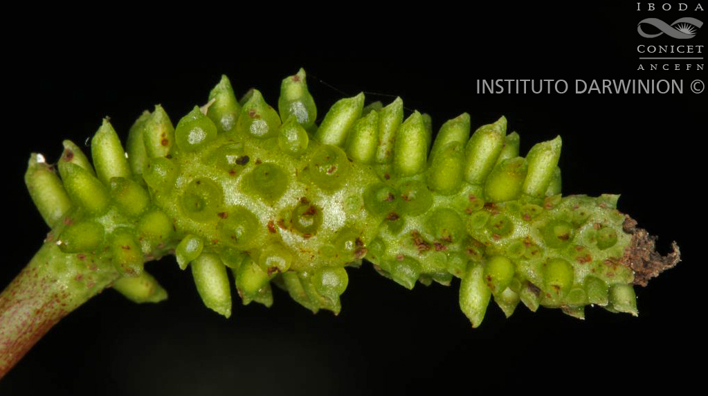 Hierbas terrestres o rupícolas, rastreras; tallos ramificados, con entrenudos de 2-5(-7) cm de largo, glabros a levemente pulverulentos en los nudos. Hojas alternas, con pecíolos de 1-4 cm de largo, canaliculados, ciliados; láminas ovado-lanceoladas, a veces asimétricas, de 2,5-6 × 2-3,5 cm, base levemente cordada a redondeada, ápice acuminado, cartáceas, con el nervio medio marcado, ciliadas hacia el ápice. Inflorescencias axilares, compuestas por 2 espigas de 7-12 cm de largo, a veces una de ellas poco desarrollada; pedúnculos de 0,8-1,2 cm de largo; brácteas florales orbiculares. Frutos cilíndricos, de 2-3 mm de largo, sésiles, de superficie papilosa-glandular, de inserción superficial en el raquis; estigma subapical, cubierto parcialmente por una protuberancia estilar dando el aspecto de un capuchón.