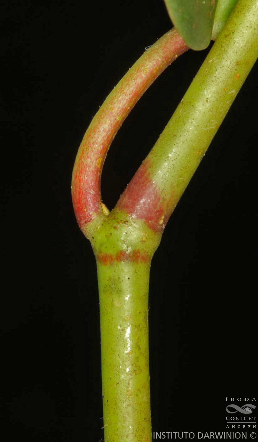 Hierbas terrestres o rupícolas, rastreras; tallos ramificados, con entrenudos de 2-5(-7) cm de largo, glabros a levemente pulverulentos en los nudos. Hojas alternas, con pecíolos de 1-4 cm de largo, canaliculados, ciliados; láminas ovado-lanceoladas, a veces asimétricas, de 2,5-6 × 2-3,5 cm, base levemente cordada a redondeada, ápice acuminado, cartáceas, con el nervio medio marcado, ciliadas hacia el ápice. Inflorescencias axilares, compuestas por 2 espigas de 7-12 cm de largo, a veces una de ellas poco desarrollada; pedúnculos de 0,8-1,2 cm de largo; brácteas florales orbiculares. Frutos cilíndricos, de 2-3 mm de largo, sésiles, de superficie papilosa-glandular, de inserción superficial en el raquis; estigma subapical, cubierto parcialmente por una protuberancia estilar dando el aspecto de un capuchón.