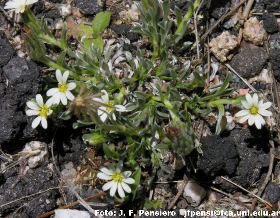 Hierbas pequeñas, rizomatosas, hasta de 10 cm de alto, con tallos simples, hojosos en la base, seríceos. Hojas obovadas, de 20-50 × ca. 5 mm, base largamente atenuada, semiabrazadora, ápice obtuso, margen entero, densamente pubescentes, con pubescencia plateada. Capítulos solitarios, cortamente radiados, pedunculados, de 12-15 × ca. 12 mm. Involucro acampanado; filarios graduados dispuestos en 3 ó 4 series, linear-ovados, de 5-15 × 1,2-2 mm, agudos, pubescentes en el ápice, subglabros en la base. Flores del margen con corola blanca o rosada, ca. 10 mm de largo, limbo de 2,4-5 × 1,5 mm; flores del centro con corola de 6-7 mm de largo. Aquenios elipsoides, de 4-5 × 1 mm, seríceos. Papus pajizo, de 6-9 mm de largo.