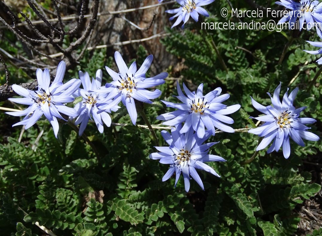 Hierbas acaules, de 8-20 cm de alto, glanduloso-pubescentes. Hojas inferiores dispuestas en roseta, con corto pecíolo envainador, lanceoladas, oblongo-oblanceoladas, de 4-12 × 3-6 cm, pinnatipartidas, lóbulos opuestos o semialternos, frecuentemente algo imbricados, ovado-oblongos, obtusos o semiagudos, enteros o con 1 ó 2 dientes gruesos en el margen, anchos y decurrentes a lo largo del raquis en la base, densamente glanduloso-pubescentes; hojas superiores ausentes o 1 ó 2, bracteiformes, lineares a linear-oblanceoladas. Capítulos solitarios sobre 1-3 escapos. Involucro de 14-25 × 14-30 mm; filarios 3-4-seriados, oblongo-lanceolados a oblongos, agudos en el ápice, glanduloso-pubescentes, los internos con margen escarioso. Flores 15-30, corola azul, las del margen con tubo de 7-8 mm de largo, labio exterior de 10-12 mm de largo. Aquenios truncados en el ápice, densamente velludos, con tricomas rojobroncíneos. Papus de 10-12 mm de largo, leonado.