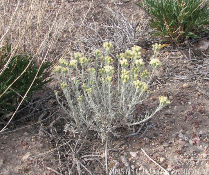 Sufrútices o arbustitos muy ramosos, de 50-60 cm de alto, laxamente tomentosos o glabrescentes; tallos ascendentes, hojosos hasta la inflorescencia. Hojas lineares, de 1-3,5 cm × 1-1,5 mm, subobtusas en el ápice, enteras o con 1-2 pares de lóbulos, crasas, laxamente tomentosas a glabras. Capítulos discoides, dispuestos en cimas corimbiformes densas en los ápices de las ramas; pedúnculos bractéolados, de 7-20 mm de largo. Involucro acampanado, ca. 5 × 5-6 mm; brácteas del calículo pocas, lineares, breves; filarios 9-13, lanceolados, agudos en el ápice y lanuginosos o glabros en el dorso. Flores isomorfas, ca. 20, con corolas amarillas, tubulosas, ca. 6 mm de largo, cortamente 5-lobadas, lóbulos triangulares, ca. 0,6 mm de largo. Aquenios cilindroides, ca. 4 mm de largo, costados, glabros. Papus blanco de 6-7 mm de largo.
