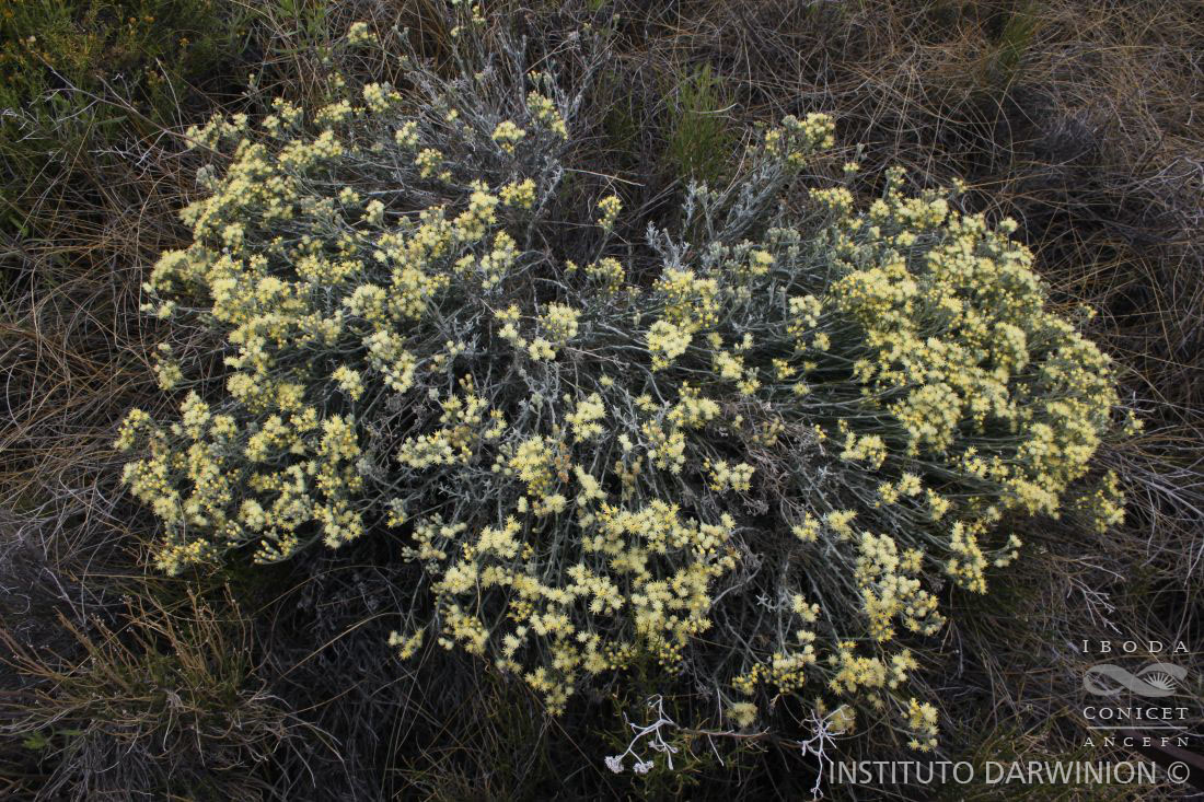 Sufrútices o arbustitos muy ramosos, de 50-60 cm de alto, laxamente tomentosos o glabrescentes; tallos ascendentes, hojosos hasta la inflorescencia. Hojas lineares, de 1-3,5 cm × 1-1,5 mm, subobtusas en el ápice, enteras o con 1-2 pares de lóbulos, crasas, laxamente tomentosas a glabras. Capítulos discoides, dispuestos en cimas corimbiformes densas en los ápices de las ramas; pedúnculos bractéolados, de 7-20 mm de largo. Involucro acampanado, ca. 5 × 5-6 mm; brácteas del calículo pocas, lineares, breves; filarios 9-13, lanceolados, agudos en el ápice y lanuginosos o glabros en el dorso. Flores isomorfas, ca. 20, con corolas amarillas, tubulosas, ca. 6 mm de largo, cortamente 5-lobadas, lóbulos triangulares, ca. 0,6 mm de largo. Aquenios cilindroides, ca. 4 mm de largo, costados, glabros. Papus blanco de 6-7 mm de largo.