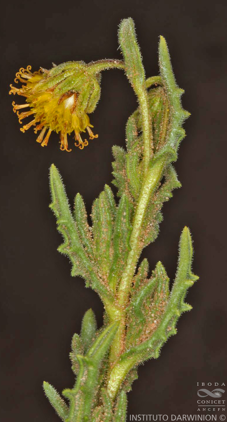 Arbustitos densamente ramosos, de 20-50 cm de alto, resinosos, fragantes, glabros; tallos densamente hojosos hasta el ápice. Hojas sésiles, aparentemente fasciculadas, oblongo-lineares, de 3-12 × 2-7 mm, subobtusas en el ápice, con 1-4 pares de dientes grandes, notablemente revolutas en el margen, raramente enteras, carnosas. Capítulos discoides, nutantes, en los ápices de ramitas laterales muy cortas, cortamente pedunculados, formando en conjunto pseudoracimos. Involucro acampanado, de 6-7,5 × 5-6 mm; brácteas del calículo 5-6, oblongas, con una bolsa oleífera en el dorso, alcanzando la mitad del involucro; filarios 6-12, lanceolado-oblongos, subobtusos en el ápice y con 1-2 bolsas oleíferas sobre la nervadura. Flores isomorfas, 12-30, con corolas rosadas, anaranjadas o amarillas, tubulosas, ca. 7 mm de largo, 5-lobadas, lóbulos triangulares, ca. 0,7 mm de largo. Aquenios cilindroides, de 3-3,5 mm de largo, costados, cortamente pilosos o glabros. Papus blanco de 6-6,5 mm de largo.