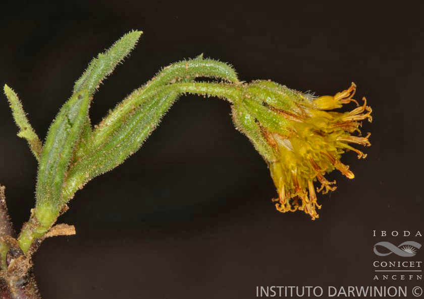 Arbustitos densamente ramosos, de 20-50 cm de alto, resinosos, fragantes, glabros; tallos densamente hojosos hasta el ápice. Hojas sésiles, aparentemente fasciculadas, oblongo-lineares, de 3-12 × 2-7 mm, subobtusas en el ápice, con 1-4 pares de dientes grandes, notablemente revolutas en el margen, raramente enteras, carnosas. Capítulos discoides, nutantes, en los ápices de ramitas laterales muy cortas, cortamente pedunculados, formando en conjunto pseudoracimos. Involucro acampanado, de 6-7,5 × 5-6 mm; brácteas del calículo 5-6, oblongas, con una bolsa oleífera en el dorso, alcanzando la mitad del involucro; filarios 6-12, lanceolado-oblongos, subobtusos en el ápice y con 1-2 bolsas oleíferas sobre la nervadura. Flores isomorfas, 12-30, con corolas rosadas, anaranjadas o amarillas, tubulosas, ca. 7 mm de largo, 5-lobadas, lóbulos triangulares, ca. 0,7 mm de largo. Aquenios cilindroides, de 3-3,5 mm de largo, costados, cortamente pilosos o glabros. Papus blanco de 6-6,5 mm de largo.
