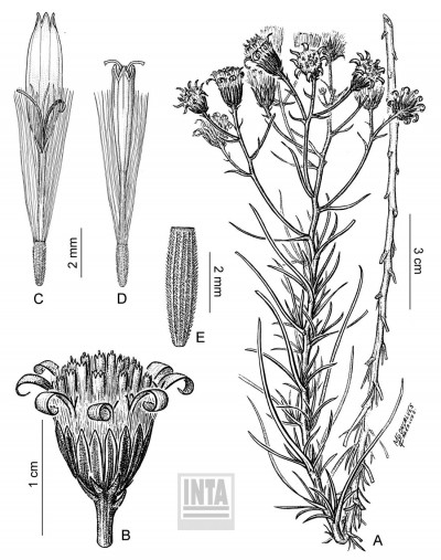 Se distingue de las demás variedades por presentar los capítulos radiados ; flores del margen liguladas y por las hojas profundamente pinnatisectas, con raquis linear de 40-50 × ca. 1 mm y 1-2 pares de segmentos lineares, de 10-25 × ca. 1 mm, agudos; hojas inferiores frecuentemente enteras; arbustos ca. 0,50 m de alto