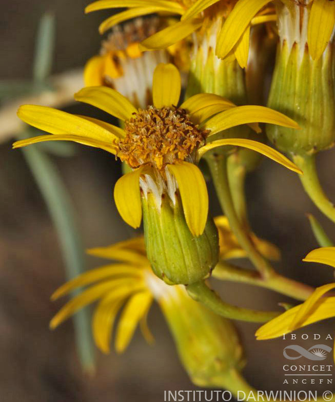 Arbustos de 0,5-2 m de alto, muy ramosos, glabros; tallos densamente hojosos hasta la inflorescencia. Hojas alternas, crasas, pinnatisectas con raquis linear de 10-60 × 1-2 mm y 1-3 pares de segmentos lineares, agudos, de 2-25 × 0,5-1 mm; o enteras, lineares, de 10-70 × 1 mm. Capítulos radiados o subdiscoides, pocos, dispuestos en cimas corimbiformes en los extremos de las ramitas; pedúnculos de 5-35 mm de largo. Involucro acampanado, de 7-10 × 5-6 mm; brácteas del calículo pocas, muy cortas; filarios 10-13, lanceolados, agudos, glabros en el dorso. Flores dimorfas, las del margen con corolas amarillas, liguladas, lígula oblonga, ca. 6 mm de largo o con corolas filiformes muy cortas, de 3-4 mm de largo y con estilo largamente exerto; las del centro numerosas, con corolas tubulosas, de 8-9 mm de largo, cortamente 5-lobadas, lóbulos triangulares, ca. 0,6 mm de largo. Aquenios cilindroides, ca. 5 mm de largo, densa y cortamente pilosos. Papus blanco, de 8-9 mm de largo.