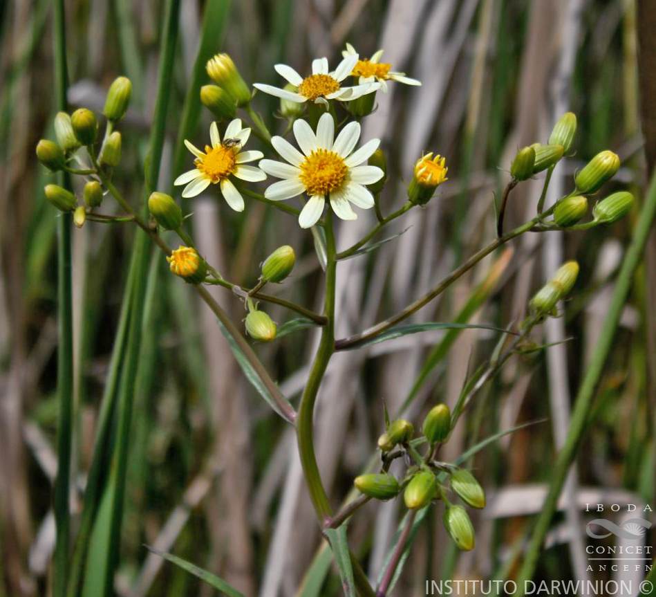 Hierbas anuales, de 0,5-1,5 m de alto, glabras; tallos erectos, costados, hojosos hasta la inflorescencia. Hojas inferiores oblanceoladas, atenuadas en largo pecíolo, agudas en el ápice, por lo común tempranamente marchitas; hojas superiores sésiles, linear-lanceoladas, de 6-12 cm × 2-10 mm, enteras o con 2-5 dientes largos a cada lado en la parte inferior. Capítulos radiados, numerosos, formando corimbos en el extremo de las ramas; pedúnculos de 1-3 cm de largo. Involucro acampanado, de 8-12 × 8-10 mm; brácteas del calículo pocas, lineares, cortas; filarios 13-20, lineares, agudos, glabros en el dorso. Flores dimorfas, las del margen ca. 8, con corolas blanco-amarillentas, liguladas, lígula elíptica, de 9-12 × 4 mm; las del centro numerosas, con corolas amarillas, tubulosas, de 10-12 mm de largo, cortamente 5-lobadas. Aquenios cilindroides, ca. 4 mm de largo, costados, glabros. Papus blanco de 9-10 mm de largo.