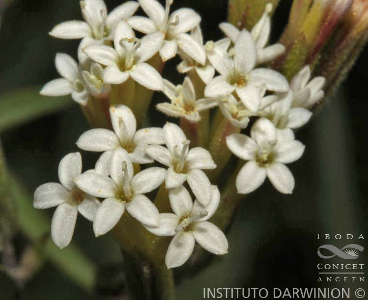 Hierbas perennes, de 10-30 cm de alto, con varios tallos ascendentes o erectos, hojosos hasta la inflorescencia, con pelos glandulares capitados y pelos alargados simples y multicelulares. Hojas sésiles, elípticas, de 0,6-2,5 × 0,2-0,7 cm, atenuadas en la base, subagudas en el ápice, enteras o apenas aserradas, con la misma pubescencia del tallo. Capítulos sésiles, dispuestos en glomérulos solitarios o formando cimas de a tres. Involucro de 6- 8 mm de alto; filarios agudos, con pelos glandulares en el dorso a veces entremezclados con pelos simples. Flores con corolas violáceas o de color blanco-lila de 6-7 mm de largo, pubescentes. Papus isomorfo formado por escamitas muy cortas y 3-8 (15) aristas casi tan largas como la corola.
