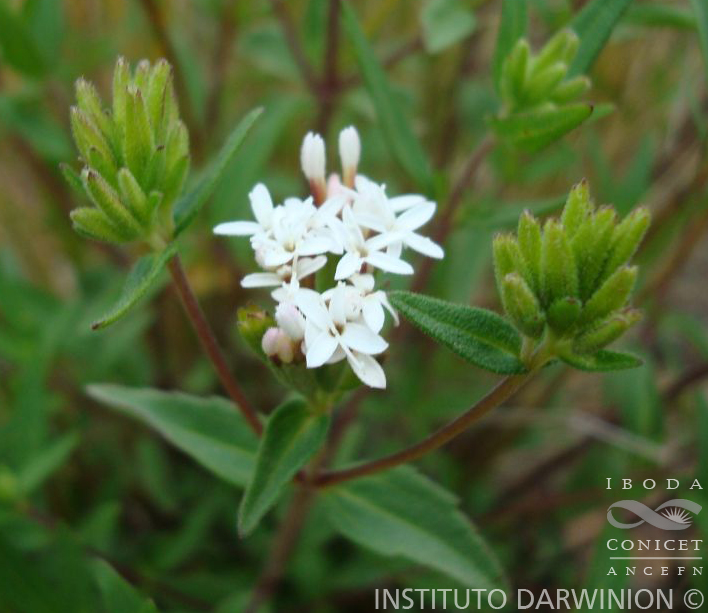 Hierbas perennes, de 10-30 cm de alto, con varios tallos ascendentes o erectos, hojosos hasta la inflorescencia, con pelos glandulares capitados y pelos alargados simples y multicelulares. Hojas sésiles, elípticas, de 0,6-2,5 × 0,2-0,7 cm, atenuadas en la base, subagudas en el ápice, enteras o apenas aserradas, con la misma pubescencia del tallo. Capítulos sésiles, dispuestos en glomérulos solitarios o formando cimas de a tres. Involucro de 6- 8 mm de alto; filarios agudos, con pelos glandulares en el dorso a veces entremezclados con pelos simples. Flores con corolas violáceas o de color blanco-lila de 6-7 mm de largo, pubescentes. Papus isomorfo formado por escamitas muy cortas y 3-8 (15) aristas casi tan largas como la corola.