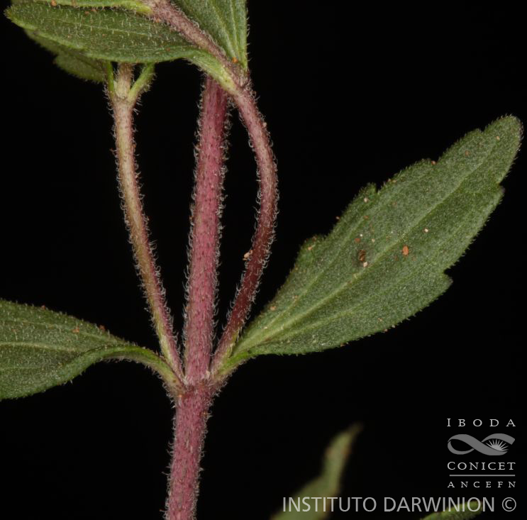 Hierbas perennes, de 10-30 cm de alto, con varios tallos ascendentes o erectos, hojosos hasta la inflorescencia, con pelos glandulares capitados y pelos alargados simples y multicelulares. Hojas sésiles, elípticas, de 0,6-2,5 × 0,2-0,7 cm, atenuadas en la base, subagudas en el ápice, enteras o apenas aserradas, con la misma pubescencia del tallo. Capítulos sésiles, dispuestos en glomérulos solitarios o formando cimas de a tres. Involucro de 6- 8 mm de alto; filarios agudos, con pelos glandulares en el dorso a veces entremezclados con pelos simples. Flores con corolas violáceas o de color blanco-lila de 6-7 mm de largo, pubescentes. Papus isomorfo formado por escamitas muy cortas y 3-8 (15) aristas casi tan largas como la corola.