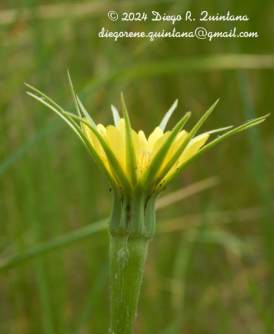 Hierbas anuales o bienales, erectas, ramosas desde la base, de 20-60 cm de alto. Hojas linear a linear-lanceoladas, de 10-25 × 1-2 cm, enteras, poco abrazadoras en la base, ápice largamente acuminado, glabras. Capítulos solitarios, con pedúnculo muy engrosado en el ápice. Involucro cilíndrico-acampanado, de 17- 25 × 22 mm; filarios linear-lanceolados, ápice largamente acuminado. Flores más cortas que el involucro, corolas amarillas, de 14-20 mm de largo. Aquenios fusiformes, de 17-22 mm de largo, costados, con granulaciones sobre las costillas, rostro largo. Papus amarillento, de 22-30 mm de largo.