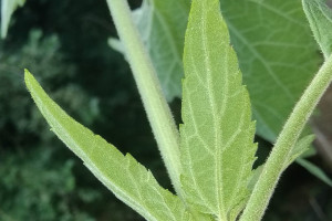 Arbustos de 1-2 m de alto. Hojas de 5-10 × 2,5-5 cm. Involucro de 3-3,5 × 2-2,5 mm. Flores con corola ca. 3 mm de largo. Aquenios de 2 mm de largo.