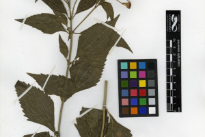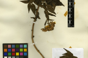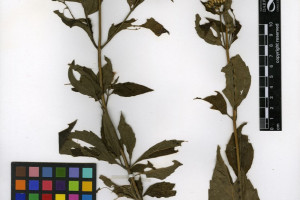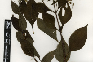 Arbustos de 1-1,5 m de alto. Hojas brevemente pecioladas, láminas ovado-elípticas, de 8-12 × 3-5 cm, cuneiformes en la base, atenuadas y agudas en el ápice, irregularmente aserradas en el margen, laxamente pubescentes o casi glabras en ambas caras. Capítulos muy numerosos dispuestos en cimas corimbiformes Arbustos de 1-1,5 m de alto. Hojas brevemente pecioladas, láminas ovado-elípticas, de 8-12 × 3-5 cm, cuneiformes en la base, atenuadas y agudas en el ápice, irregularmente aserradas en el margen, laxamente pubescentes o casi glabras en ambas caras. Capítulos muy numerosos dispuestos en cimas corimbiformes