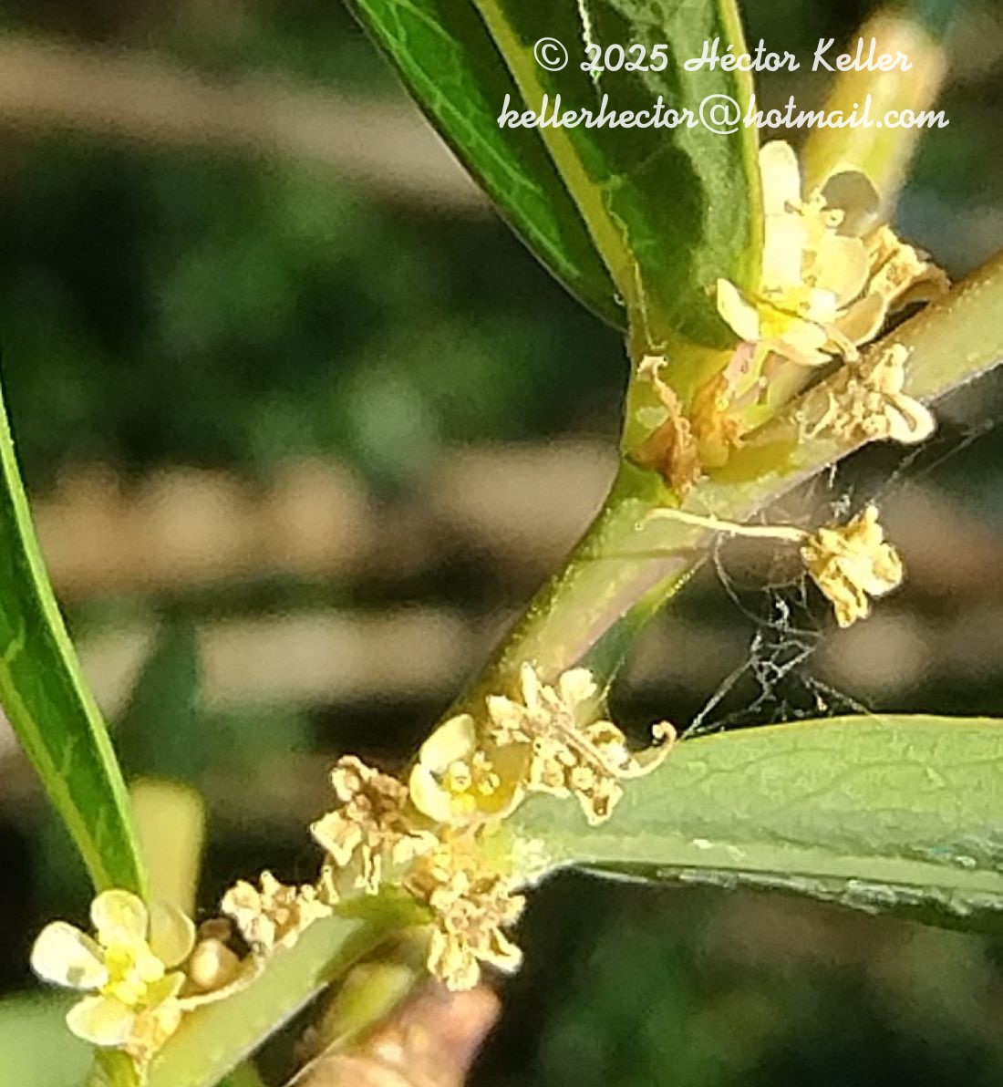 Arbustos de 1,5-4 m de alto; ramas leñosas, ramitas superiores de 10-15 cm de largo. Pecíolos de 1-2 mm de largo; láminas lanceoladas, de 1-4,5 × 0,1-0,8 cm, mucronadas, glabras, discoloras, marginadas; estípulas ovado-lanceoladas, de 2-3 mm de largo. Inflorescencias unisexuales, fasciculadas, en ramitas cortas; brácteas pequeñas; pedúnculos estaminados breves, ca. 2 mm de largo, los pistilados de 3-3,5 mm de largo. Flores estaminadas con 5-6 sépalos elípticos, obovados, de 1-1,5 mm de largo, 1-nervados; estambres 3, casi libres, filamentos gruesos, anteras horizontales, subglobosas, de dehiscencia longitudinal; glándulas 5, subglobosas. Flores pistiladas con 5 sépalos, iguales a los de la flor estaminada; disco anular más o menos lobulado; ovario subgloboso; estilos 3, casi libres, 2-lobados, reflexos. Cápsulas esferoidales, pequeñas, de 3,5 mm de diámetro, deprimidas, pardas, lisas, 6-lobuladas, dehiscentes por 6 valvas. Semillas finamente foveoladas.