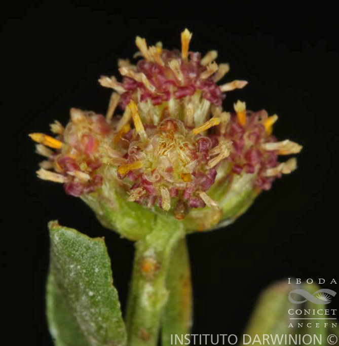 Arbustos bajos, de 10-30 cm de alto, revestidos por nidos pilosos. Hojas sésiles, angostamente obovadas a cuneiformes, de 1-2,5 cm × 3-5 mm, agudas u obtusas en el ápice y atenuadas o cuneadas en la base, enteras o con 1-3 dientes a cada lado delmargen, en apariencia 1-nervadas. Capítulos sésiles en la axila de las hojas superiores, formando una espiga o glomérulo folioso terminal. Capítulos pistilados con involucro acampanado de 4- 6 × 4 mm; filarios en 3-4 series, obtusos o subobtusos, los exteriores ovados y los interiores angostamente ovados. Flores ca. 30; corolas de 3-4 mm de largo, de ápice irregularmente dentado o laciniado. Aquenios ca. 1,2 mm de largo, 5-costados, glabros. Papus 2-seriado, apenas acrescente. Capítulos estaminados con involucro acampanado de 4-5 × 3-4 mm; filarios en 3 series, obtusos o subobtusos, los exteriores ovados, los intermedios oblongos y los interiores angostamente oblongos. Flores 21-29; corolas de 3-4,2 mm de largo; estilo con ramas cortas y pegadas entre sí. Papus con cerdas ensanchadas en el ápice.