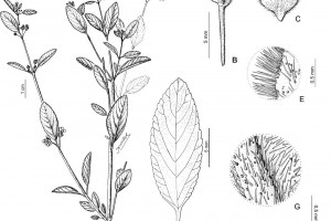 Arbustos de 80-300 cm de alto; tallos densamente estrigosos, raramente híspidos o suavemente estrigosos; entrenudos de (1- )2-9 cm de largo. Hojas opuestas, a veces ternadas, pecioladas, raro subsésiles; pecíolos hasta de 2,4 cm de largo; láminas de 0,5-6,1 x 0,3-3,5 cm, elípticas u ovadas, base cuneada, raramente redondeada, ápice generalmente agudo, a veces obtuso, margen crenado, venación pinnada, a veces perfectamente acródroma, cara adaxial estrigosa y abaxial serícea. Sinflorescencias en pleiobotrios homotéticos frondosos; florescencias 3-6 por axila, espigas de (0,3-)0,4-1,2(1,5) cm de largo, con pedúnculos de 2-26 mm de largo, estrigosos, a veces híspidos; brácteas de 2-5 mm de largo, ovadas, con ápice recurvado o no, las apicales libres entre sí, las basales soldadas, pubescentes en ambas caras, en la abaxial usualmente sólo en la base y sobre el nervio medio. Cáliz de 1-2 mm de largo, cara externa estrigosa; corola blanco rosada, de 2-6 mm de largo, cara externa suavemente estrigosa. Clusas 1- 2 mm de largo.