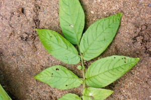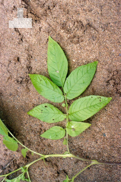 Hierbas perennes, de 25-50 cm de alto, erectas; tallos de 3-5 mm de diámetro en la base de la planta, con alas hasta de 2 mm de ancho, verdes a verdes con manchas purpúreas, con pelos 1- seriados y tricomas multicelulares eglandulares. Pseudoestípulas ausentes o hasta de 10 mm, pubescentes, con pilosidad similar a la del tallo. Pecíolos de 2,5-6 cm; láminas imparipinnadas, de 12- 28 × 2,5-11 cm, verdes, con pubescencia en ambas caras similar a la de los tallos, a menudo finamente ciliadas y denticuladas en los márgenes; folíolos laterales 2-4 pares, subiguales, con excepción del par más proximal que son más pequeños; folíolos laterales distales elípticos a anchamente ovados, de 4,5-9,5 × 2,4- 4 cm, base oblicua, el ápice agudo a acuminado; folíolo terminal anchamente ovado a elíptico casi orbicular, de 6,5-13 × 3,3-8,2 cm, base cordada, truncada a cuneada, ápice agudo a acuminado; foliólulos intersticiales 0-5, con peciólulos de 10 mm o más, raramente sésiles, ovados a orbiculares. Inflorescencia de 3-10 cm, generalmente dividida, con 13-21 flores, los ejes pubescentes, con pilosidad similar a la de los tallos; pedúnculo de 4-19 cm. Pedicelos de 13-21 mm en flores y frutos, articulados ca. de la mitad de su largo; cáliz de 6-7 mm, lóbulos de 4-6 mm, atenuados, los acúmenes ca. 2,3 mm, con pilosidad similar a la presente en los tallos; corola pentagonal, de 2-3 cm de diámetro, blanca a blanca con tintes azules en la cara adaxial y abaxial, acúmenes alrededor de 1,3 mm; anteras de 4-6 mm, no siempre bien desarrolladas; estilo de 10-11 mm, excediendo a los estambres en 3-4 mm, estigma clavado a capitado. Fruto globoso, de 0,8-1,5 cm de diámetro, verde, glabro.