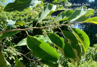 Árboles de 5-20 m de alto; ramas de 3-12 mm de diámetro, cuando jóvenes glabras, esparcida a densamente pubescentes; entrenudos de 0,4-4,0 cm de largo. Hojas con pecíolos de 0,2-1,6 cm de largo, pubescentes a glabrescentes; láminas generalmente elípticas a estrechamente elípticas, muy raramente ovaladas u oval-lanceoladas, de 1,1-23,7 × 0,6-11,4 cm, base aguda u obtusa, de ápice agudo, raramente obtuso, de color verde a verdeparduzcas y opacas cuando secas, glabras; agallas fusiformes, más altas que anchas, muy frecuentes en el epifilo, 8-14 pares de venas secundarias. Inflorescencias en ripidios de 6-16 cm de largo × 0,5-0,7 mm de diámetro basal y 0,5-2,5 mm de diámetro apical, opositifolias o extra axilares, con 1-3 flores; pedicelos densamente pubescentes; brácteas deltoides, de 0,8-1 × 0,5 mm; bractéolas deltoides, de 0,5-0,8 × 0,8 mm. Flores amarillas, cáliz con 3 sépalos libres, de 1,3-2,3 × 2-3 mm, aplanados, deltoides, de ápice agudo a acuminado, base truncada, densamente pubescentes en la cara externa, internamente glabros; corola con 6 pétalos, connados en la base, formando un tubo basal corto, de 2-4,5 mm de diámetro, externamente pubérulos a pubescentes e internamente glabros, carnosos, dispuestos en 2 verticilos, el verticilo externo compuesto por pétalos con proyecciones aliformes obovado-espatuladas, elípticas ó suborbiculares, patentes, ascendentes o inclinadas hacia abajo, comprimidas lateralmente, de 6-14 mm de largo × 3-8 mm de alto en su parte más ancha y 0,5 mm de espesor en la base; verticilo interno con pétalos reducidos, de 0,5-1,5 mm de alto × 2-4,5 mm de ancho en la parte libre y de 1-1,5 mm de alto × 2-3 mm de ancho en la parte connada, densamente pubérulas a pubescentes externamente, internamente glabros; androceo compuesto de 100-130 estambres de disposición espiralada alrededor del eje floral, de 0,8-1 mm de largo, anteras de 0,7-0,8 mm de largo; gineceo con 40-60 carpelos libres, glabros, con estigmas capitados conniventes. Frutos globosos, de 2,6-4 × 2,5-4,5 cm, glabros, quedando fijos a las ramas después de la madurez, sobre pedúnculos de 0,3-3,2 cm de largo × 1-4 cm de diámetro; epicarpio generalmente con superficie fuertemente ornamentada con areolas prominentes, hexagonales, pentagonales o con otros diseños en relieve, bien enmarcados en sus límites pero sin relación con la impresión de las semillas. Semillas cuneiformes, de 11-18 × 6-10 mm, negras, adheridas a la sarcotesta gelatinosa, hialina y dulce en el fruto fresco.