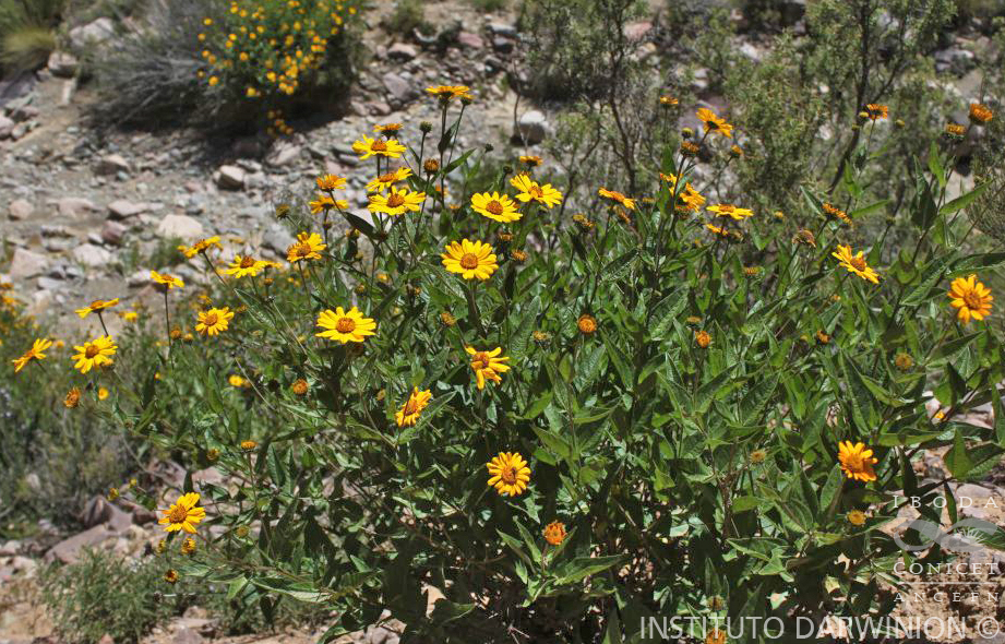 Hierbas perennes de 0,8-1,5 m de alto, erectas, ramosas, con tallos estriados, estrigoso-híspidos, con pelos de base tuberculada. Hojas opuestas o alternas; pecíolos de 2-4,8 mm de largo; láminas ovadas a ovado-lanceoladas, de 3-11 × 1,5-4,4 cm, de base atenuada a redondeada y ápice agudo, 3-nervias, la haz estrigosa, el envés hirsuto. Capítulos radiados, 1-4, terminales o sobre pedúnculos axilares densamente híspidos. Involucro acampanado, de 6-12 × 10-15(-18) mm; filarios 3-seriados, oblongo-lanceolados, de ápice agudo, ligeramente recurvados, estrigosos en el dorso y en los márgenes. Flores del margen 14- 19, corolas amarillas, con lígula elíptica de 15-23 × 5-7 mm, tubo ca. 4 mm de largo; las del centro perfectas, con corola tubulosa, de 5-6 mm de largo, estrigosa hacia la porción basal; páleas oblongas a obtusas, oscuras, estrigosas hacia la porción distal. Aquenios obovoides, de 3,5-4,8 mm de largo, comprimidos, de sección elíptica. Papus formado por 2 aristas de 2,5-3 mm de largo y con 6-8 escamitas intermedias de 0,4-0,6 mm de largo, laceradas.