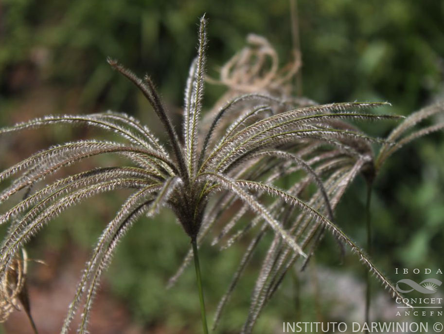 Hierbas perennes de 60-135(-200) cm de alto, erectas, cespitosas, raro estoloníferas; innovaciones intravaginales; cañas delgadas, simples, excepcionalmente ramificadas, nudos glabros; vainas hasta de 17 cm de largo, glabras, escabrosas en los márgenes, pilosas hacia la zona ligular; lígulas pilosas, con algunos pelos más rígidos hasta de 3-4 mm de largo; láminas planas, hasta de 45 cm x 4-15 mm. Inflorescencias constituidas por 4-35 racimos espiciformes de 8-18 cm de largo, flexuosos o erectos, verticilados en el extremo de la caña. Espiguillas unilaterales, imbricadas, 3-4-floras; glumas 2, persistentes, lanceoladas, agudas, la inferior de 1-2,5 mm de largo, la superior de 1,9-3,5 mm de largo, de mayor longitud que los antecios; lemma inferior fértil de 1,5-2,6(-2,8) x 0,5-1 mm, aquillada, carina ciliada, márgenes pilosos, pelos blanquecinos de 1,5-3 mm de largo, aristulada o con arista apical de (1-1,4-)1,7-1,8 mm de largo, recta u oblícua, escabrosa; pálea de 1,5-2 x 0,7-0,8 mm, anchamente elíptica, dorso piloso, carinas ciliadas, ápice agudo; lodículas 2, soldadas a la base de la pálea; estambres 3, anteras de 0,6-1 mm de largo; antecio superior estéril de 1-1,6 mm de largo, obtuso, con arístula subapical de 1,7-4 mm de largo, los antecios superiores siguientes reducidos, de 0,5-0,9 mm de largo; cariopsis de 1-1,5 x 0,6 mm, castaña, trígona, plano-convexa, surco no diferenciado; mácula embrional ½-¾ de su longitud; hilo basal punctiforme.