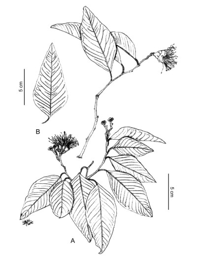 Árboles o arbustos de corteza grisácea; muy ramificados, con ramas glabras a ligeramente pubérulas; nectarios supraaxilares conspicuos. Hojas alternas, simples; pecíolo de 0,3-1 cm de largo, glabro a pubescente; lámina elíptica, de 5-15 × 3-7,6 cm, base obtusa, ápice agudo a acuminado, margen entero, cara adaxial lustrosa, glabra, papirácea; estípulas diminutas, triangulares. Inflorescencias en panículas compuestas por corimbos axilares y terminales; pedúnculos de 0,5-1,4 cm de largo, glabros a ligeramente pubérulos. Flores perfectas, 4-meras, con 3 brácteas diminutas en la base; sépalos orbiculares a semiorbiculares, los externos de 5-6 × 5-6 mm, los internos de 7-10 mm × 8-9,8 mm, cóncavos, imbricados, libres, glabros, caducos; disco nectarífero con 4 nectarios cóncavos, opuestos a los sépalos; pétalos obovados a romboidales, de 14-23 × 8-11 mm, sésiles, ápice ligeramente retuso, libres, glabros, verdosos a cremosos; estambres 50-120, glabros, filamentos de 2,5-5,4 cm de largo, rojizos, anteras de contorno oblongo, de 3,8-4,2 mm de largo; ginóforo de 2,3-4,3 cm de largo; ovario cilíndrico, de 5-9,6 mm de largo, glabro, verdoso; estigma sésil, inconspicuo. Fruto una cápsula septicida, cilíndrica, de 2,8-18(-26) × 8,4-14 mm, menos ancha en las constricciones, lisa, glabra, verdosa y con líneas suturales rojizas a amarillo rojizas. Semillas 1-20, elipsoides; arilo blanco y embrión verde.