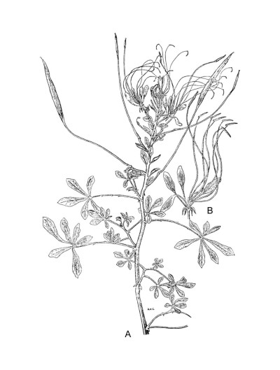 Subarbustos de 1,5 m de alto; ramas glandular-pubescentes. Hojas con pecíolos de 3-8,5 cm de largo, glandular-pubescentes, armados con espinas rectas, delgadas o gruesas; espinas estipulares de 1,5-5 × 2-2,5 mm, ligeramente curvadas en el ápice; peciólulos de 1-3 mm de largo, armados, pubescentes; láminas 5-7 folioladas, folíolos obovados a oblanceolados, de 2,8-5 × 1,2-2,2 cm, basalmente cuneados, apicalmente obtuso apiculados, ambas caras con tricomas eglandulares cortos dispersos, nervadura central y venas secundarias densamente pubescentes, ciliados, sin espinas. Inflorescencia en racimos corimbiformes, de 15 cm de largo, terminales; brácteas con pecíolos pubescentes, de 2-5 mm de largo, con un par de espinas en la base y lámina ovada, de 11-17 × 6-14 mm, basalmente redondeada, apicalmente obtusa, ambas caras con tricomas eglandulares cortos dispersos, ciliada. Flores con pedicelos de 20-30 mm de largo, pubescente; sépalos lanceolados, de 8-9 × 1-2 mm, acuminados, pubescentes abaxialmente, ciliado; pétalos oblongo-elípticos, de 30-33 × 8-12 mm, basalmente contraídos en una garra de 15-18 mm de largo, apicalmente obtusos, glabros, blancos; nectario cónico, carnoso, discreto, obsoleto en el fruto; filamentos estaminales de 95-110 mm de largo, violáceos, anteras de 12-13 mm de largo; ovario cilíndrico, de 7-10 mm de largo, puberulento; estilo ausente, estigma discoide, sésil. Frutos cilíndricos, de 7,5-9,5 × 0,4-0,6 cm, glabros; ginóforo de 75-95 mm de largo. Semillas suborbiculares, de 1,8-2 × 1,5 mm, longitudinalmente estriadas, transversalmente surcadas, hendiduras cubiertas por una membrana lisa, células infladas ausentes.