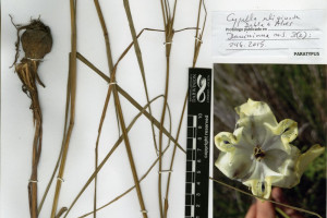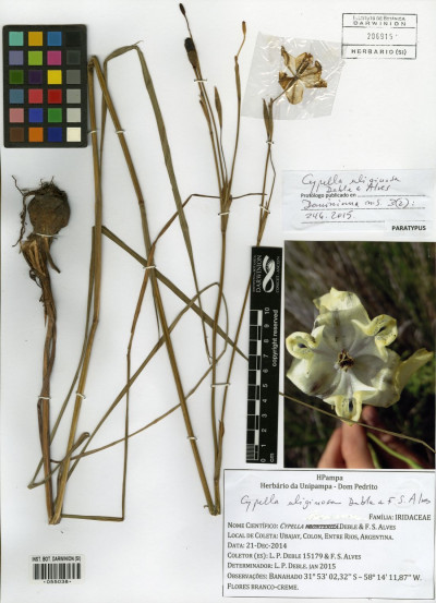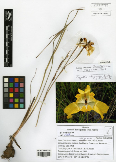 Material Tipo: Argentina. Corrientes. San Martín, La Cruz, Provincial Route 114, close to the Bañado Guaviaraví, in boggy land, flowers pale-yellow, 22 Dic 2014, L.P. Deble & F.S. Alves 15181 (holotipo, SI; isotipo, MVFA)