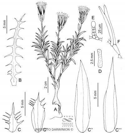 Se distingue de la variedad tipo por sus hojas con una espinita blanca en el ápice, margen con espinas blancas, tiesas, de 1-2 mm de largo, (rara vez más cortas o ausentes) sobre el falso borde formado por la lámina enroscada, por su involucro cilíndrico de 18-25 mm de alto y filarios externos e intermedios con margen escarioso, notablemente espinosos en el ápice y en el margen, los internos inermes; de la variedad triceps se diferencia por sus capítulos solitarios.