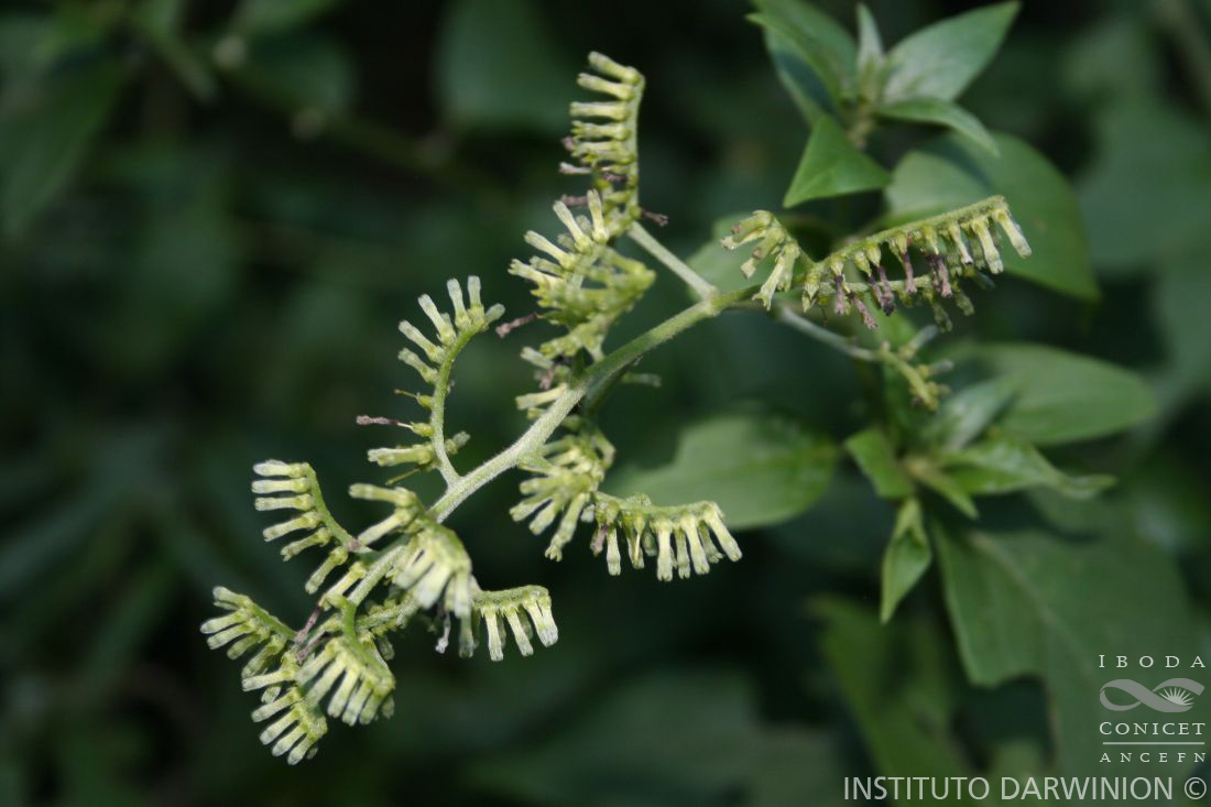 A´rboles o arbustos escandentes, de 0,5-3 m de alto. Hojas alternas o subopuestas, con pecíolos de 0,6-1 cm de largo; láminas ovadas o elípticas, de 1,2-4(-7) × 2,5-8(-10) cm, cartáceas, adpreso estrigosas de densidad variable en ambas caras, más densa en las porciones juveniles, excepcionalmente subglabras, ápice agudo, ligeramente caudado, base obtusa o redondeada, margen entero. Inflorescencias en cincinos ramificados, pedunculados, terminales, multifloros (30-40 flores), de 5 cm de largo. Flores con cáliz densamente viloso de 2 mm de largo, lacinias triangulares, agudas; corola hipocrateriforme, con tubo de 5-7 mm de largo, viloso, lóbulos agudos. Fruto de 2 × 4 mm, anaranjado o rojizo. Var. paniculatus.- Cara abaxial ligeramente estrigosa, principalmente sobre la nervaduras, a subglabra.