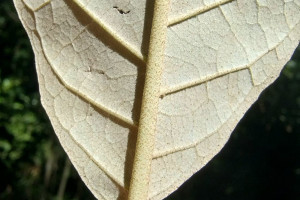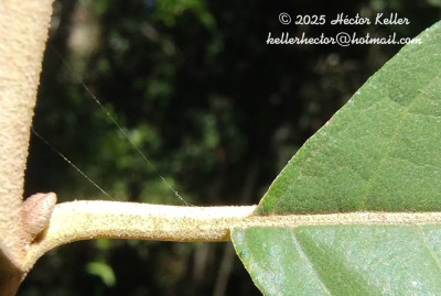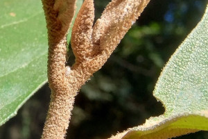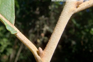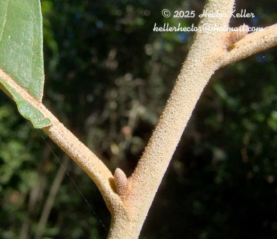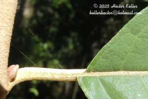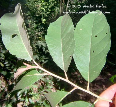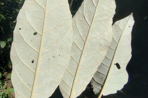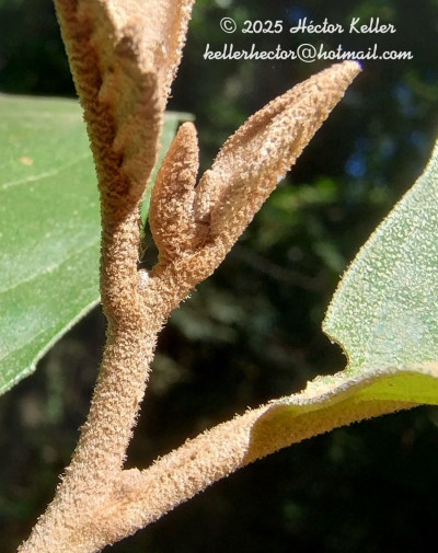 Arbustos apoyantes de 2,5-10 m de alto; ramas cilíndricas, flexuosas, hojosas hasta el ápice, tomentosas. Hojas alternas, pecioladas; pecíolos de 15-25 mm de largo; láminas elípticas u obovadas, de 13-21 × 5-9 cm, base asimétrica, ápice agudo, margen aserrado, coriáceas, discoloras, haz glabra, envés incano, con pelos estrellados. Capítulos numerosos, cortamente pedunculados, dispuestos en cimas corimbiformes axilares, abreviadas, muy densas. Involucro fusiforme, de 9-11 × 3-4 mm; filarios dispuestos en 7-9 series, agudos, glabros o tomentosos hacia el ápice, los externos obovados o elípticos, los internos lanceolados o linear-lanceolados. Flores 3-4; corolas blancas o blanco-amarillentas de 7-9 mm de largo. Aquenios de 4-5 mm de largo, costados, glabros. Papus blanquecino, serie interna setácea, de 6-7 mm de largo, serie externa paleácea, de 0,5-1 mm de largo.