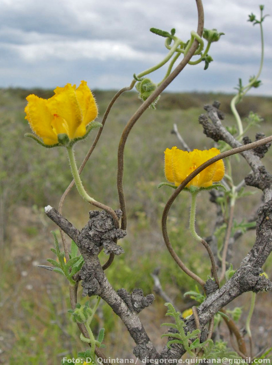 Plantas volubles hasta de 100 o más cm de largo, pubescencia formada por tricomas escabrosos de base ensanchada, entremezclados con pelos gloquidiados; tallos con brillo sedoso, pubescentes hasta casi glabros con tricomas escabrosos retrorsos. Hojas opuestas, pinnatisectas a bipinnatisectas, con frecuencia las inferiores más disectas que las superiores, pubescentes; pecíolos de 3-50 o más mm de largo; láminas ovadas o elípticas, de 15-70(-100) × 12-40 mm, pubescencia más densa en la cara abaxial con predominio de pelos gloquidiados. Inflorescencias monocasios paucifloros que a veces parecen flores solitarias o en dicasios. Flores 5-meras; cáliz con segmentos estrechamente ovados o estrechamente triangulares, de 2,5-30 × 1-5 mm ápice obtuso, con menos frecuencia estrechamente elípticos, pubescentes, cara abaxial con tricomas gloquidiados a lo largo del nervio y borde; pétalos de 9-20 × 8-17 mm y 2,5-4 mm de profundidad, amarillos o anaranjados, anchamente espatulados, muy cóncavos, irregularmente laciniados y algo crespos, concavidad con pubescencia en la cara externa e interiormente pubérula a glabrescente; escamas nectaríferas de 4-7 × 1.5-3.5 mm, algo carnosas, subrectangulares a subelípticas, amarillas con marcas anaranjadas en el ápice, curvas en perfil, cóncavas, auriculadas en la parte lateral superior, sacciformes en la mitad inferior, borde superior algo engrosado y 2-lobulado, lóbulos recurvados y a veces ligeramente escotados, formando un doble arco evidente en forma de “m”, parte dorsal anterior de la escama con engrosamientos lingüiformes, que son una continuación de los lóbulos apicales, o con un engrosamiento horizontal que conecta las aurículas de la escama, dorso de la escama con 3 quillas aladas, llegando hasta el tercio basal o el medio de la escama, bastante por debajo del sitio de inserción de los apéndices dorsales; apéndices dorsales filiformes, de 1,5-4 mm de largo, sobrepasando bastante la altura de la escama, con ápices por lo general, ligeramente expandidos; estaminodios de 5-7 mm de largo, 2 por escama nectarífera, con forma de “L”, infractos poco más abajo de la mitad, parte inferior subrectangular, pubescente, parte superior subfusiforme, papilosa con una prolongación abruptamente adelgazada, filiforme, más allá del ápice de la escama; estambres 20-25 por fascículo; filamentos de 4-7,5 mm de largo; anteras elipsoides, ca. 0,6 mm de largo; ovario semisúpero a mayormente ínfero, anchamente obcónico a obcónico, ca. 2-5 mm de largo × 4-8 mm de diámetro en la parte superior, pubescente, placentas 3, óvulos numerosos; estilo de 2,5-4,5 mm de largo, piloso en la mitad inferior, 3-fido. Frutos cápsulas subglobosas a obcónicas, ca 9-20 mm de largo × 5-11 mm de diámetro en la parte superior, de mayormente ínferas a semi súperas. pubescentes, dehiscentes por 3 valvas. Semillas numerosas, más o menos elipsoides u obovoides, de 0,7-1,2 × ca. 0,5 mm, reticuladas castañas.
