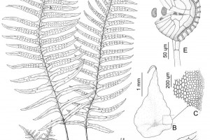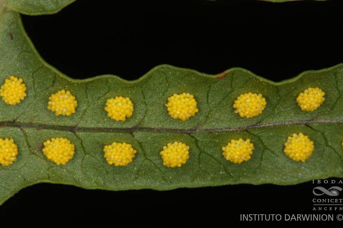 Plantas epífitas a saxícolas. Rizomas rastreros, de 4-5 mm de diámetro, con escamas peltadas, adpresas, enteras, ovadas, de 3-3,5 mm de largo, ápice largamente acuminado, concoloras o con márgenes más claros, clatradas, con retículo celular muy nítido. Frondes aproximadas, de 15-30(-75) cm de largo; pecíolos cilíndricos, de 5-12 cm de largo, glabros, surcados abaxialmente, articulados a un filopodio notable; láminas pinnatisectas; segmentos alternos u opuestos, 12- 50 pares, linear-elípticos, de 15-80 × 5-13 mm, herbáceos, cara abaxial y raquis con tricomas 2-celulares, glandulosos, con pequeñas escamas ovado-lanceoladas de 1-1,5 mm sobre el raquis, base ensanchada, ápice redondeado a subagudo, margen entero, ondulado, a veces crenado hasta lobado; venación anastomosada, 1-areolada, con una venilla inclusa, venillas libres hacia el margen. Soros circulares, de 1-2,5 mm de diámetro, 1-seriados, amarillos, terminales sobre la venilla inclusa de las aréolas, sin parafisos. Esporas reticulado-verrugosas, de 60-74 µm de diámetro ecuatorial.