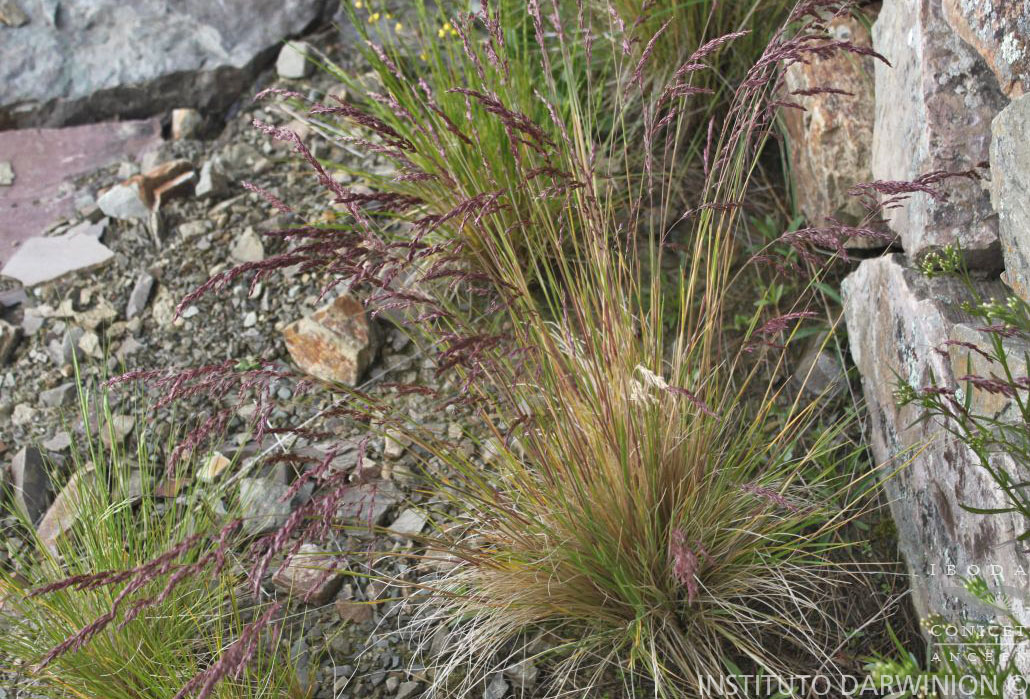 Plantas cespitosas, con rizomas cortos; cañas erectas, de (8-)15-70 cm de alto, escabriúsculas hacia el ápice, glabras hacia la base; césped mayor que la mitad de la longitud de las cañas floríferas; vainas lisas, escabriúsculas o pubérulas hacia el ápice; lígulas obtusas, truncadas, de (0,8-)1,5-4 mm de largo, borde denticulado; láminas de (2-)8-25 cm x 0,4-0,5 mm, erectas, lineares o algo curvadas, convolutas, a veces filiformes, lisas o escabriúsculas, ápice agudo, pulvinadas en la base. Inflorescencias de 5-24 x 1-2 cm, subespiciformes, contraídas, exertas o con la base subincluida en el césped, raquis escabroso o glabrescente, ramificaciones y pedicelos escabrosos. Glumas de (2,8-)3-6,5 mm de largo, generalmente mayores que el antecio o la inferior menor que el mismo, gluma inferior 1-nervia, la superior 3-nervia, nervio medio y dorso escabrosos, los nervios laterales menores o mayores que la mitad de la longitud de la gluma; lemma de 3-5 mm de largo, 5-nervia, nervios notables en el tercio superior, dorso escabroso o escabriúsculo, ápice bidentado, mucronada o con arístula subapical de 0,8-1,6(-2,5) mm de largo, inserta a 1-1,5(-2) mm del ápice, excepcionalmente mútica; pálea membranácea de 2,5-3 mm de largo, 2-nerviada, nervios escabrosos, ápice bidentado; callo redondeado, glabro o con escasos pelitos cortos; raquilla de 1-1,6 mm de largo, con pelos escasos de 0,8-1 mm de largo; lodículas 2, de 0,3-0,6(-0,8) mm de largo, 2-lobuladas, a veces con diminutos pelos en el borde; estambres 3, anteras de 1,4-2,5 mm de largo; ovario algo giboso, estilos 2, estigmas breves, plumosos; cariopsis de 2-2,2 mm de largo, con estilopodio desarrollado, llevando restos de los estigmas, surco ventral poco profundo, hilo oval, embrión breve, endosperma seco.