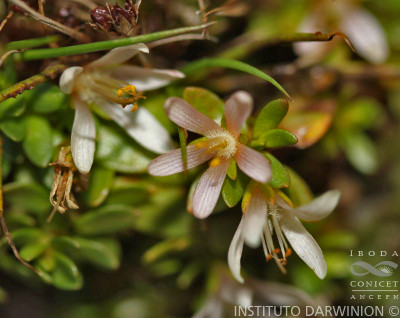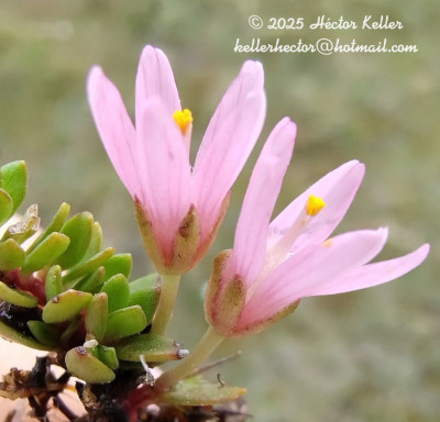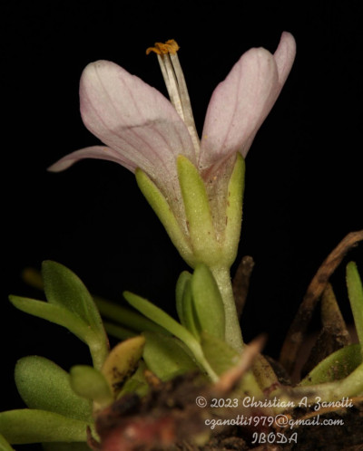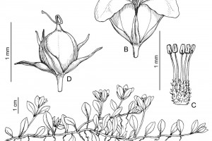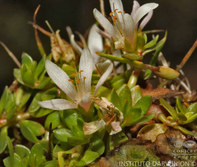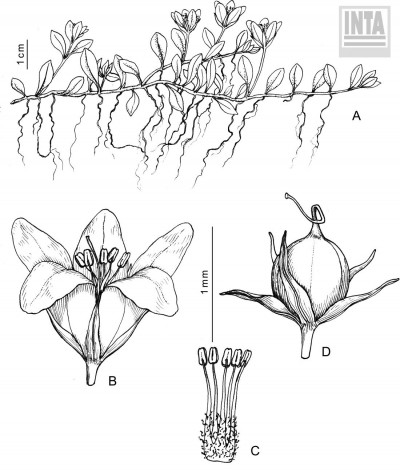 Hierbas anuales o perennes, de 0,5-2 cm de alto, rastreras, cespitosas o no, con los tallos simples o ramificados, 4-gonos, radicantes, rizomatosos, glabros. Hojas alternas, raramente opuestas en la base, elípticas, obovadas a linear-espatuladas, de 5-10 × 3-5 mm, de ápice obtuso o agudo, generalmente mucronado, de base obtusa a cuneada, membranáceas, glabras; sésiles o con pecíolos de 1-2 mm de largo. Flores solitarias, axilares, ca. 1 cm de diámetro; pedicelos filiformes, de 10-25 mm de largo; cáliz 5-partido desde la base, segmentos linear-lanceolados, de 2-3,5 × ca. 0,5 mm, de ápice agudo y margen hialino; corola 5-partida, campanulado-rotácea, con los lóbulos ovado-lanceolados a oblongos, de 3-8 × ca. 1 mm, de ápice agudo, blancos o rosados con la base violácea; estambres 5, filamentos ca. 2,5 mm de largo, soldados en un tubo ca. 1 mm de largo, glanduloso-pubescente, con diferentes grados de pubescencia, desde la base hasta el ápice, anteras ovado-lanceoladas, de 0,5 mm de largo; ovario globoso, ca. 0,5 mm de largo, glabro, estilo filiforme ca. 2 mm de largo, estigma poco diferenciado. Fruto una cápsula subglobosa, de 1-2,5 mm de diámetro, con el cáliz persistente ± 2 veces su largo, de dehiscencia circuncisa. Semillas numerosas, poliédricas, aplanadas en el dorso, rojizas.