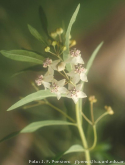 Arbustos de 0,5-3 m de alto, ramificados desde la base, rámulos pubescentes, raro tomentosos. Hojas opuestas; pecíolo de 1-10 mm de largo; lámina linear a linear-lanceolada, de 2,5-12 × 0,2-1,3 cm, de ápice agudo a atenuado, mucronado, base estrecha a anchamente cuneada, subglabra a esparcidamente pubescente, con tricomas suaves en la vena media y el margen. Inflorescencias con 4-12 flores; pedúnculo de 1,5-4 cm de largo, pubescente; brácteas filiformes, deciduas; pedicelo de 1-2,5 cm de largo, pubescente; cáliz con lóbulos lanceolados o triangular-atenuados, de 2-5 × 0,6-1,3 mm, pubescentes; corola blanca, reflexa, lóbulos ovados, de 5-8 × 3-5 mm, subagudos, cara adaxial minutamente papilosa y con el margen derecho densamente cubierto de largos tricomas blancos; corona con lóbulos blancos o liláceos, unidos a la columna estaminal a 1-1,5 mm sobre la base de ésta, lateralmente comprimidos, de 2-4 × 1,5-3 mm, tan altos como la columna, margen superior entero; cabeza estilar plana; anteras con alas de 1,5-2 mm de largo.; polinario con retináculo subcilíndrico, de 0,3 × 0,10-0,15 mm; caudículas ca. 0,3 mm de largo; polinios oblongos u oblanceolados, de 1,2-1,3 × 0,3 mm, aplanados. Folículos ovoides, de 4-7 × 1,5-2,5 cm, inflados, pubescentes, ápice agudo, cubiertos con apéndices filiformes ca. 1 cm de largo, con pedúnculos contortos, erectos. Semillas obovadas, comosas, de 3,5-5 × 2 mm, la superficie verrucosa.