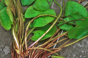 Plantas con rizoma lanoso. Hojas con pecíolos de 4-8(-10) mm de diámetro, con 8 canales aeríferos en sección transversal, generalmente con un anillo de pelos septados en el punto de inserción con la lámina; láminas elípticas a suborbiculares, de 10-22 × 9-20 cm, base con lóbulos redondeados a obtusos, a veces los bordes superpuestos, con un profundo seno basal que llega a 1-4 mm de la inserción del pecíolo, ápice redondeado, subcoriáceas, nervios principales 11-15, radiales, unidos por nervios transversales oblicuos que forman un retículo de hexágonos irregulares que disminuyen de tamaño hacia el margen. Flores solitarias, de 9-14 cm de diámetro, pedicelos de 5-10 mm de diámetro, con un anillo interior de 6-7 canales aeríferos mayores, rodeados por 12-14 de menor sección; cáliz compuesto por 4 sépalos ovados, de 5-7 × 2,5-4,5 cm, coriáceos; corola compuesta por 16-24 pétalos más cortos que los sépalos, blancos; androceo compuesto por 224-324 estambres, los más externos petaloideos ca. 5,2 cm de largo y con las anteras más cortas que los internos; gineceo compuesto por 28-47 carpelos, procesos estilares de 1-2 cm de largo, claviformes e incurvos. Fruto no visto.