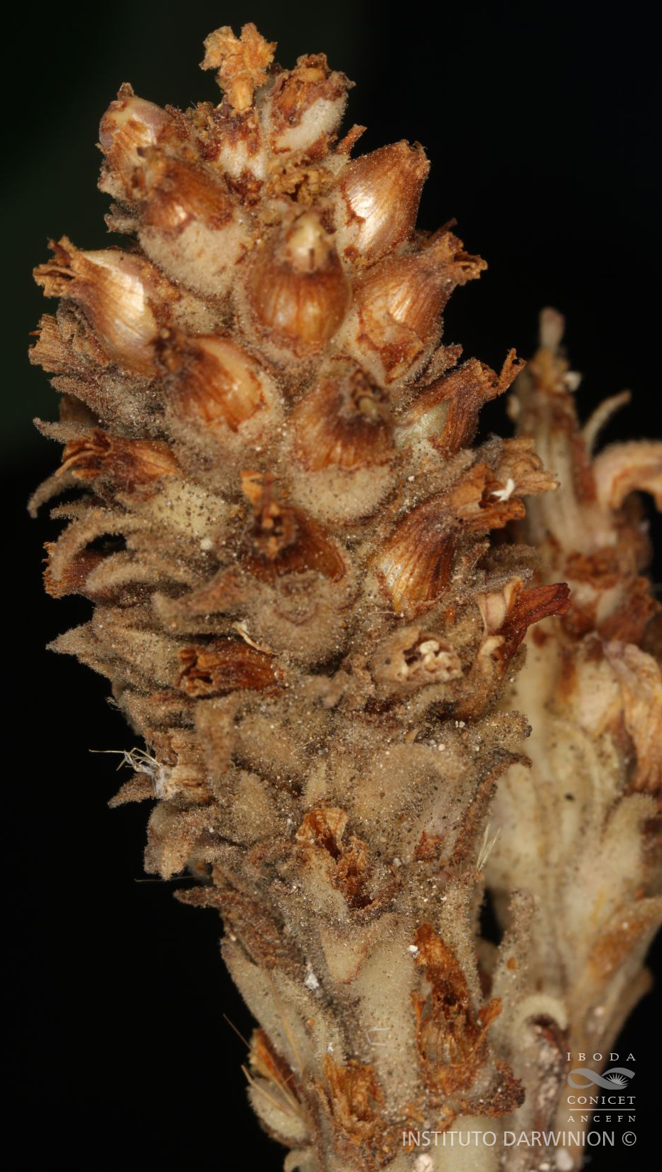 Hierbas de 6-15 cm de alto, carnosas, blanquecinas a herrumbroso pálidas en vivo, más oscuras y quebradizas cuando seca; porción subterránea hasta de 5 cm de largo, glabra, blanquecina, con unas pocas catáfilas y con primordios haustoriales cortos y carnosos.. Tallos con hojas reducidas a escamas hasta de 15 × 7 mm, subadpresas, disminuyendo en tamaño hacia el ápice. Inflorescencia en racimo denso, espiciforme. Flores con corola rosado-lilácea con la fauce amarilla, en la axila de una bráctea, con 2 bractéolas; cáliz de 10- 20 mm de largo, campanulado, levemente zigomorfo, densamente glanduloso; tubo de la corola de 15-25 mm de largo; estambres laterales con filamento de 6,5-7,5 mm de largo, ventrales de 7-8,5 mm de largo, anteras dorsifijas, tecas glabras o pubescentes; ovario ovoide a elipsoide, de 4-6,5 × 2,4-4 mm, estilo de igual longitud que el ovario, grueso, recto o algo curvado, estigma con 2-3 lóbulos papilosos, recurvados. Cápsula ovoide a elipsoide, de 9-12 × 5-7,5 mm, generalmente bivalva, raro 4-valva. Semillas ca. 0,5 mm de largo, reticuladas.