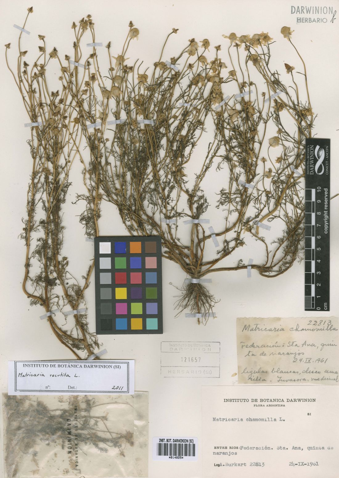 Observaciones: Nombres vulgares y usos. “Camomilla”, “manzanilla”, “manzanilla común”, “matricaria”. Se la cultiva como planta medicinal y su infusión se consume como analgésico, antitusivo, digestivo, febrífugo, pectoral, sedante, entre otros.