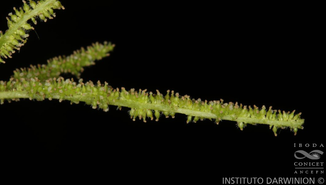 Árbol dioico, de 5-15 m de alto; corteza castaño- grisácea lenticelada; ramas jóvenes algo tortuosas, con peridermis castaña, tomentosas a subpilosas o escasamente pubescentes, glabrescentes. Hojas con láminas enteras, elípticas a oblongas, de 4-20 × 3-12 cm, +/- inequilateral, membranáceas a cartáceas, base obtusa a subcordada, ápice acuminado, margen aserrado, 3-nervadas en la basales, cara adaxial áspera, cara abaxial tomentosa a escasamente pubescente, casi glabra; pecíolo de 0,5-2,2 cm largo, pubérulo a tomentoso; estípulas de 6-15 mm de largo, escasamente pubérulas a glabras, membranáceas, caducas. Inflorescencias estaminadas en espigas de 6-11 cm de largo, solitarias, ocasionalmente apareadas; pedúnculo de 2-6 mm de largo, pubérulo a tomentoso. Flores estaminadas sésiles con perianto blanco-amarillento; tépalos de 1,2-2 mm de largo, libres o casi libres, puberulentos y ciliolados; estambres con filamentos de 1-2 mm de largo, anteras de 0,8-1,5 × 0,7-1 mm; pistilodio de 0,5-1 mm de largo, piloso en su base; brácteas interflorales de 1-1,5 mm de diámetro, peltadas, escasamente puberulentas. Inflorescencias pistiladas en espigas de 3-11 cm de largo, péndulas; pedúnculo de 3-12 mm de largo, pubérulo o tomentoso. Flores pistiladas sésiles, densamente dispuestas, perianto de 1-2 mm largo, verde-amarillento, morado en el fruto, 4-partido; ovario ovoide deprimido, de sección triangular, de 1-1,5 mm de largo; estilo de 0,2-1 mm de largo, sublateral; estigmas filiformes, de 1,5-3 mm de largo, finamente glandulosos; brácteas 1-1,5 mm de largo, peltadas, puberulentas, cilioladas, membranáceas. Frutos de 2-2,5 cm de largo, rojizos a castaños. Semillas más o menos comprimidas; embrión de cotiledones planos y más largos que la radícula.