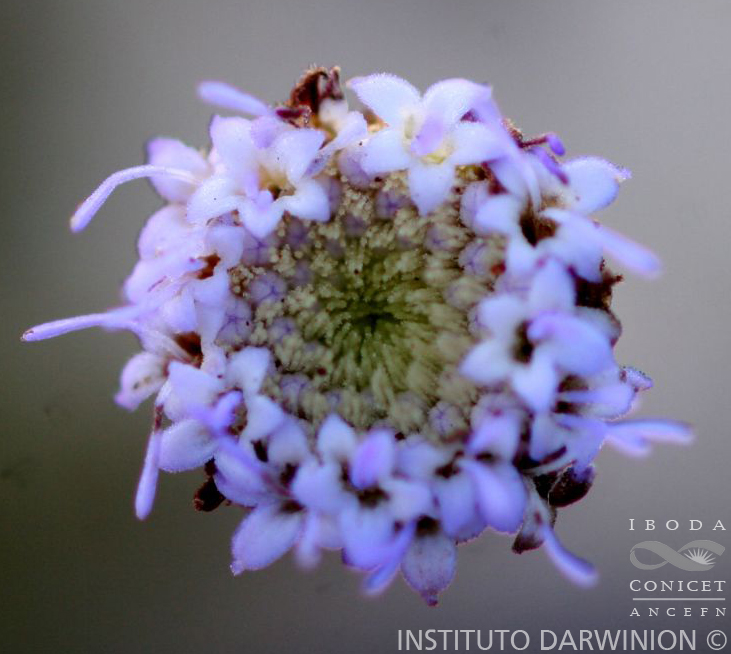 Hierbas perennes, rizomatosas, de 15-20 cm de alto; tallos ascendentes, hirsutos, laxamente foliosos en la parte inferior, desnudos y escapiformes en la superior. Hojas semiarrosetadas, dispuestas en 1-4 pares, sésiles, láminas lanceolado-elípticas, de 3- 5 × 0,5-1,5 cm, atenuadas en la base, agudas en el ápice, apenas aserradas en el margen, largamente hirsutas en ambas caras. Capítulos solitarios en el extremo de tallos escapiformes. Involucro acampanado ca. 7 × 5-8 mm; filarios fácilmente caedizos, en 3 series, los externos ovados y mucronados en el ápice, más o menos pilosos en el dorso, los internos oblongos y redondeados. Flores numerosas, corolas violáceas, ca. 4,5 mm de largo. Aquenios de 2- 3 mm de largo, laxamente híspidos. Papus amarillento.