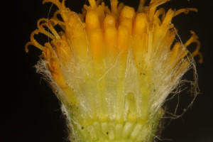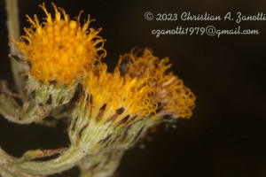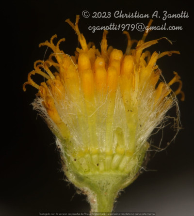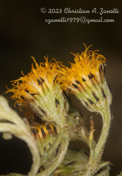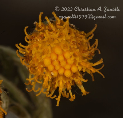 Difiere de la forma típica por presentar capítulos discoides; flores isomorfas, todas con corolas tubulosas y hojas de ca. 7 mm de ancho