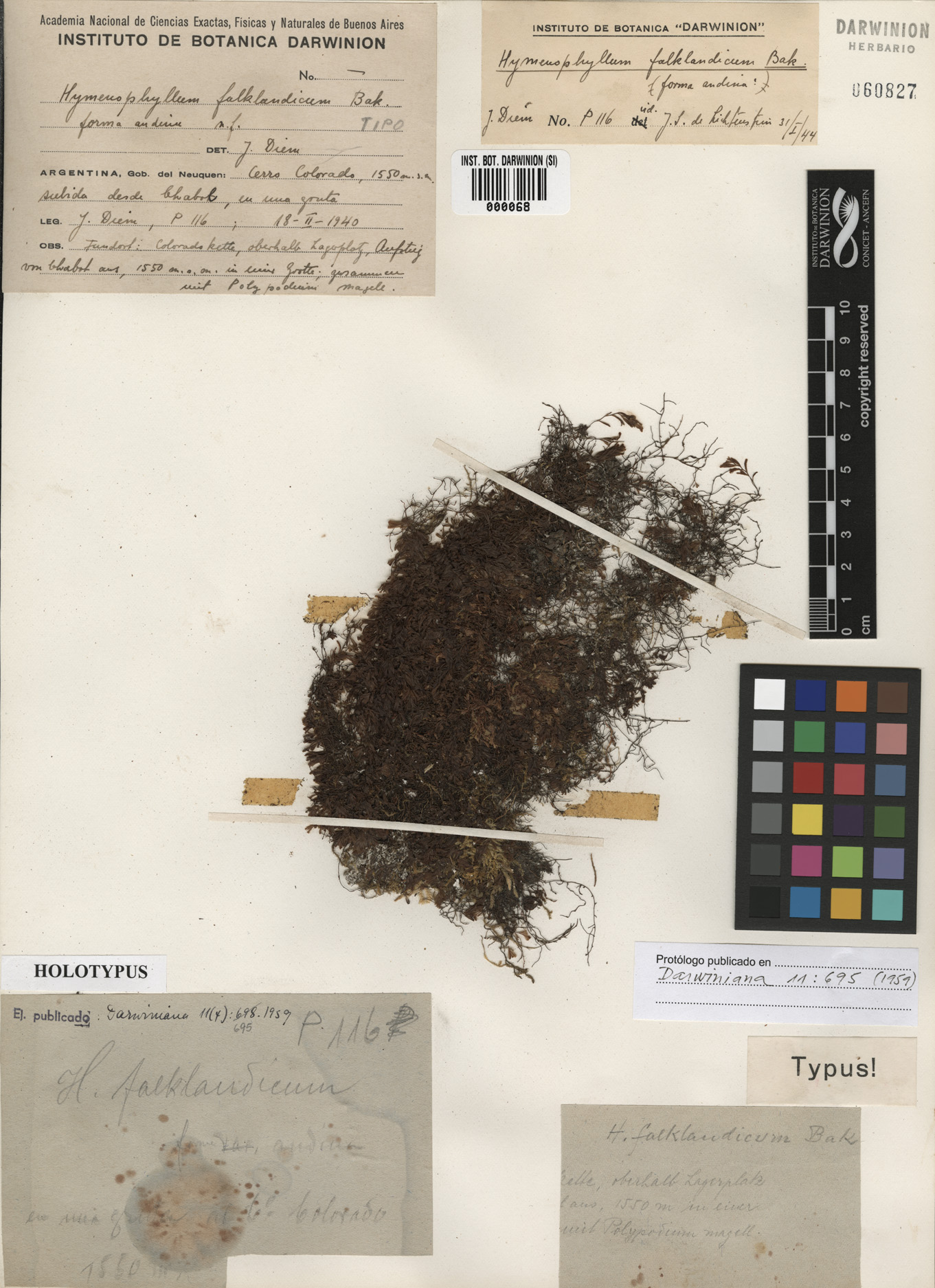 Tipo de Hymenophyllum falklandicum Baker f. andinum Diem & J.S. Licht.