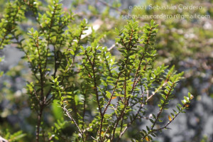 Habita en lugares húmedos, más o menos asoleados. Suele encontrarse en los esfagnales de los bosques de alerces (Fitzroya cupressoides), en las costas de los lagos de los Parques Nac. Nahuel Huapi (prov. de Río Negro) y Los Alerces (prov. de Chubut), así como en el sotobosque de las Islas Magallánicas y de Tierra del Fuego (donde los arbustos alcanzan solo 0,5 m alt.). No es muy abundante.