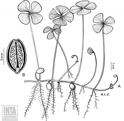Nombres vulgares: “helechito trébol”, “trébol de 4 hojas”, “trébol de agua”.