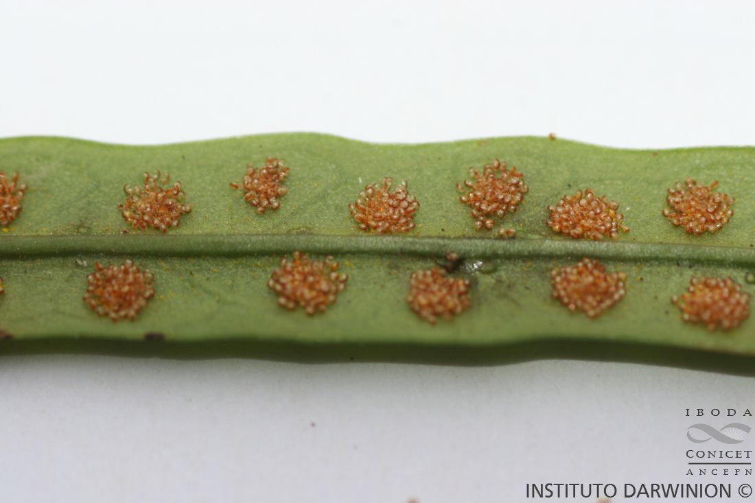 Plantas epífitas. Rizomas largamente rastreros, de 2-3(-4) mm de diámetro, verdes a verde estramíneos, con escamas ovado-lanceoladas a triangular-lanceoladas, enteras, de base suavemente escotada, castaño-grisáceas, clatradas. Frondes de 30-50(-60) cm de largo, separadas por 2-4 mm; pecíolos de 2-4(-8) cm de largo; láminas linearlanceoladas, de 0,5-1,5 cm de ancho, largamente atenuadas hacia ambos extremos, margen cartilaginoso, entero, revoluto a plano, coriáceas; cara abaxial con costa prominente, con escasas escamas esparcidas en su parte basal, ovado-deltoides, de 2 mm de largo, semejantes a las rizomáticas; venación anastomosada, poco visible, inmersa en el mesófilo; venas primarias oscuras sobre ambos lados o adaxialmente divergentes 40-60º de la costa, separados entre sí por 3- 5 mm, con 2(-3) series de aréolas entre la costa y el margen, aréolas costales trapezoidales y aréolas marginales subtriangulares, cada aréola con una venilla inclusa. Soros 2-seriados, mediales o subterminales sobre venillas inclusas, parafisos inconspicuos o ausentes. Esporangios glabros, esporas verrugadas 60- 65(-70) × 40-42 µm.