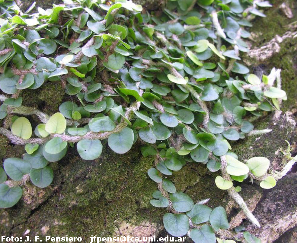 Epífitas, raramente rupícolas. Rizomas cilíndricos a aplanados dorsiventralmente, de 2-4 mm de diámetro, largamente rastreros, con numerosas ramificaciones laterales, con escamas imbricadas, basipeltadas, largamente ovadas, de 5-10 mm de largo, base redondeada, ápice largamente filiforme, el margen paucidentado, castaño, de borde blanquecino. Frondes subtrimórficas, con dos tipos de frondes estériles; pecíolos articulados a un filopodio globoso, ausentes o breves, no surcados, estramíneos, con escamas en la base, similares a las rizomáticas; láminas estériles de dos tipos, unas ovadas a ovado-lanceoladas y otras oblongas, de 1,5-6 × 1-1,8 cm, base redondeada o cordiforme, ápice obtuso o redondeado, margen entero, levemente sinuoso; láminas fértiles lineares a linear-oblongas, de 3-13 × 0,3-0,7 cm, base decurrente, atenuada a cuneada, ápice redondeado, margen entero a levemente sinuoso, papiráceas, glabrescentes, cara abaxial con escamas filiformes, de 2-3 mm de largo, tenues, dispersas sobre la costa; venación de las láminas estériles reticulada, generalmente las aréolas adyacentes a la costa con una venilla libre inclusa y hacia el margen, con aréolas menores sin venillas internas, raramente las venas son libres; venación de las láminas fértiles representada por aréolas costales fértiles, continuando hacia el margen venillas libres. Soros circulares, sobre venillas libres o en el punto de unión de dos venillas libres o anastomosadas, dispuestos en una hilera entre la costa y el margen, levemente impresos sobre la cara adaxial. Esporas verrucosas, de 55-64 µm de diámetro ecuatorial.